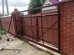 • Конструкция откатных ворот с кирпичными столбами